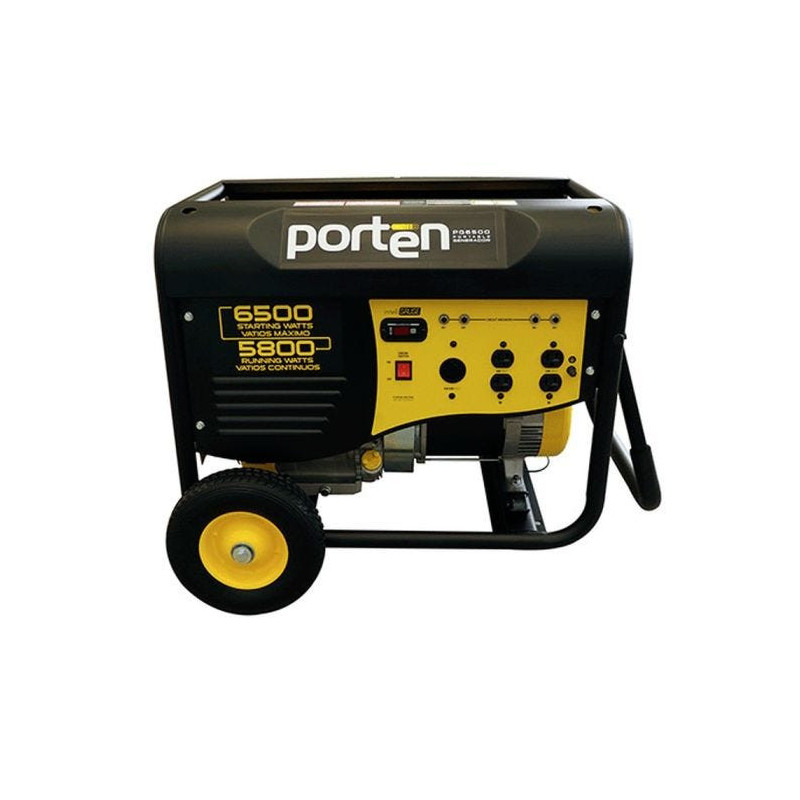 El generador portátil monofásico Porten tiene una capacidad de 6500 Watts y 5800 Watts en operación continua. Equipado con un motor a gasolina de 4 tiempos y un tanque de 25 litros, es ideal para uso doméstico o en oficinas, con un límite de 4 horas de uso continuo diario.