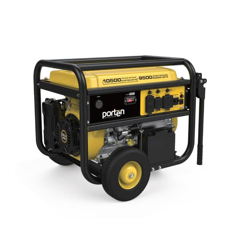 El generador portátil monofásico Porten tiene una capacidad de 6500 Watts y 5800 Watts en operación continua. Equipado con un motor a gasolina de 4 tiempos y un tanque de 25 litros, es ideal para uso doméstico o en oficinas, con un límite de 4 horas de uso continuo diario.