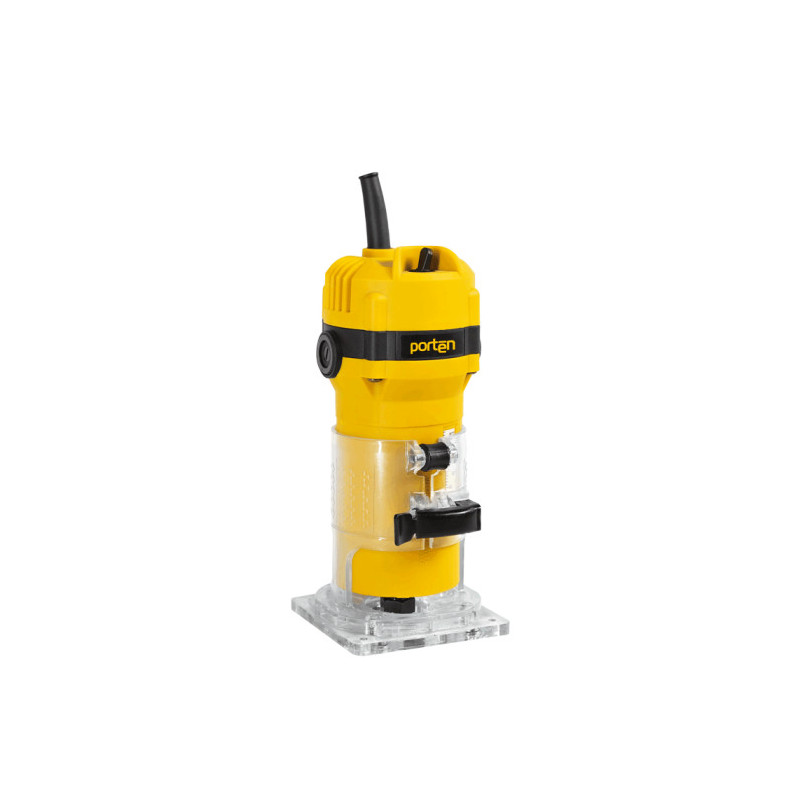 Mini rebajadora profesional Porten PHE-MR500 de 500W, con velocidad de 32.000 RPM, ideal para trabajos de carpintería y fresado en madera. Su diseño compacto y ligero permite mayor precisión y maniobrabilidad. Cuenta con ajuste de profundidad en ángulos de 0° y 45°, eje de 6 mm y funcionamiento a 120V – 60Hz, perfecta para talleres y trabajos profesionales.