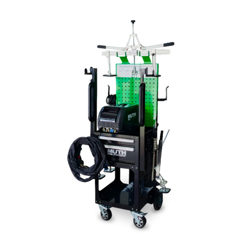 El Spotter 2 kVA Muth es un equipo con tecnología inverter y salida hasta 250A, ideal para reparación de carrocería automotriz. Incluye panel digital, carro porta tanque y kit completo de herramientas para trabajos precisos y eficientes.