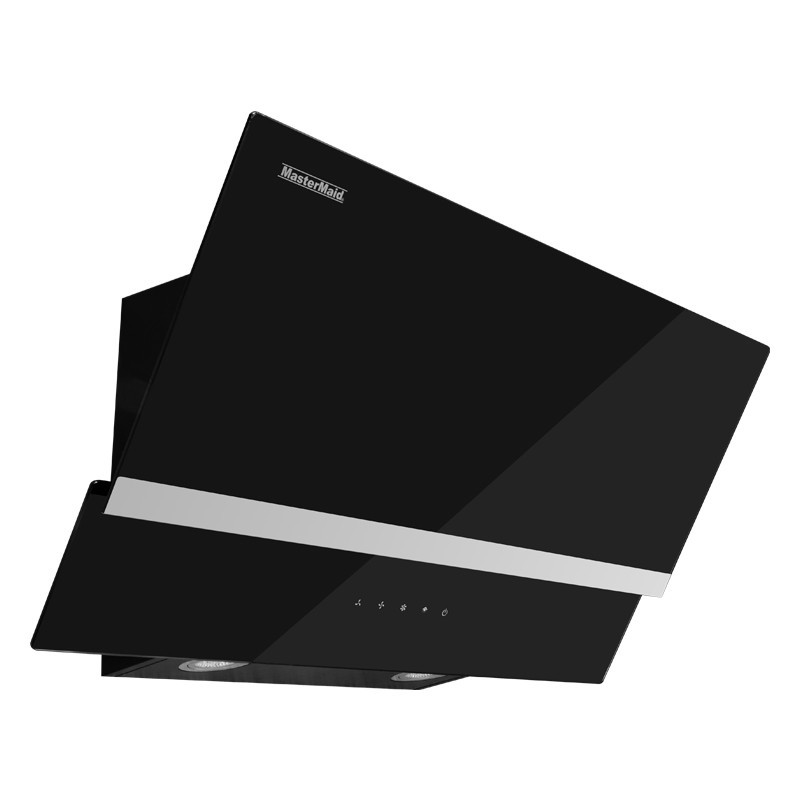 Campana extractora Mastermaid Full Touch negra de 75 cm con vidrio templado y control táctil. Diseño moderno con 3 velocidades, iluminación LED y filtros metálicos para mantener la cocina libre de humo y olores.