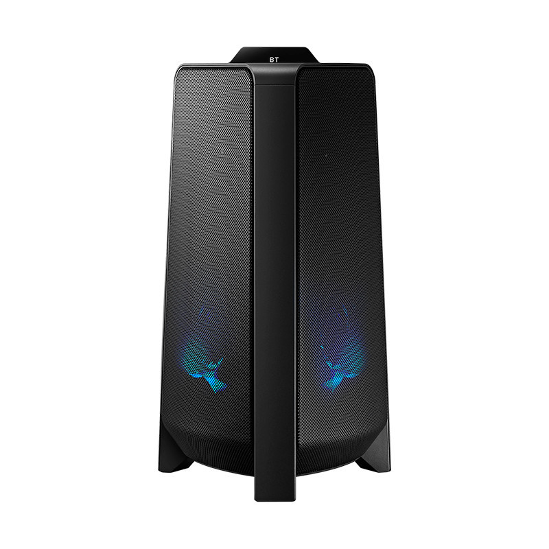 Torre de sonido Samsung ST50 MX-T50/ZP con sonido bi-direccional de 300W, luces LED para fiesta y conectividad Bluetooth múltiple. Ideal para fiestas, eventos y uso doméstico, con potenciador de bajos, puerto USB y resistencia al agua, ofreciendo audio envolvente y potente.