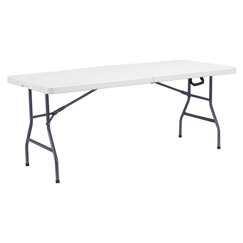 La mesa plegable rectangular blanca 73x180cm es una solución práctica y funcional para diferentes espacios, ideal para eventos, reuniones, oficinas o uso en el hogar.