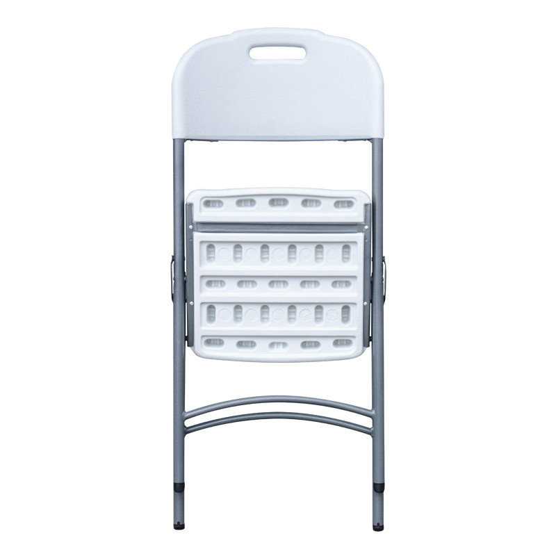 Silla reforzada plegabe blanca, soporta un peso máximo de 150kg=330lbs. El diámetro del tubo de 25mm. Grosor del tubo 1.2mm.