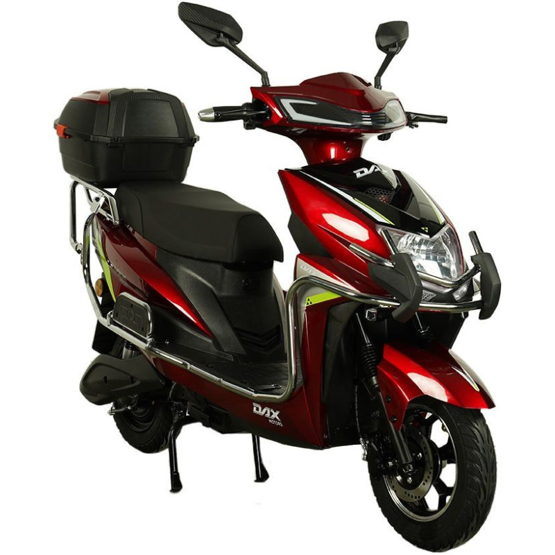 La Moto Eléctrica DAX IMPACT 1200W ofrece hasta 70 km de autonomía, alcanza 51 km/h y cuenta con 3 velocidades, frenos de disco y Bluetooth. Incluye parachoques, maletero y garantía de 12 meses, ideal para movilidad urbana eficiente y económica. Disponible en ALCOSTEC.
